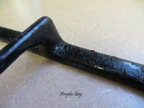 Also known as a before shot, you can see that this stove grate is covered in cooked on grease. Removing the excess food from the stove grates is just something I like to do so there is no excess food flying off. I’m pretty sure it’s an OCD thing.