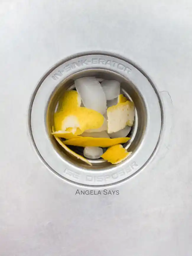 The ice helps to sharpen and degunk your blades while the citrus peel oils help to cut through grime while smelling fantastic. If your garbage disposal is extra smelly, the baking soda will help to combat the extra odors.