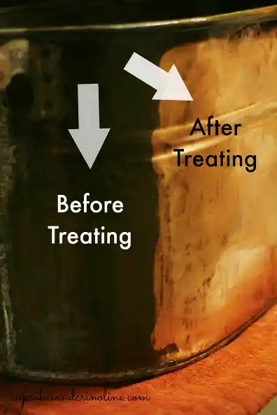 This simple stain removal solution isn’t just for BBQ’s anymore, Cupcakes and Crinoline shows that it is helpful at removing tarnish from copper.
